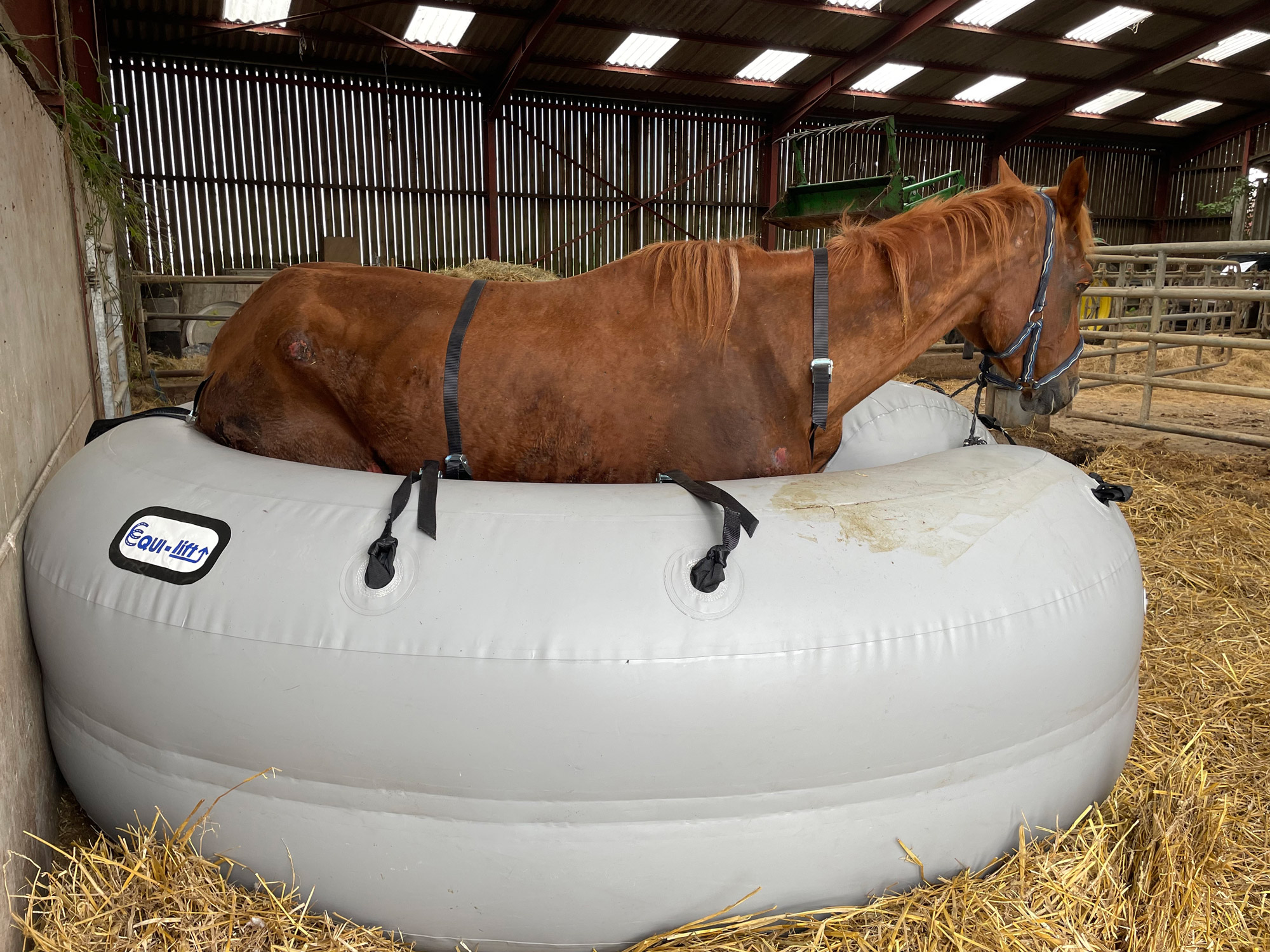 Osteoarthritis, injuries and pathologies can cause inability to get up, thanks to the Equi-lift H, 1 person alone can lift up a down horse without any other help.